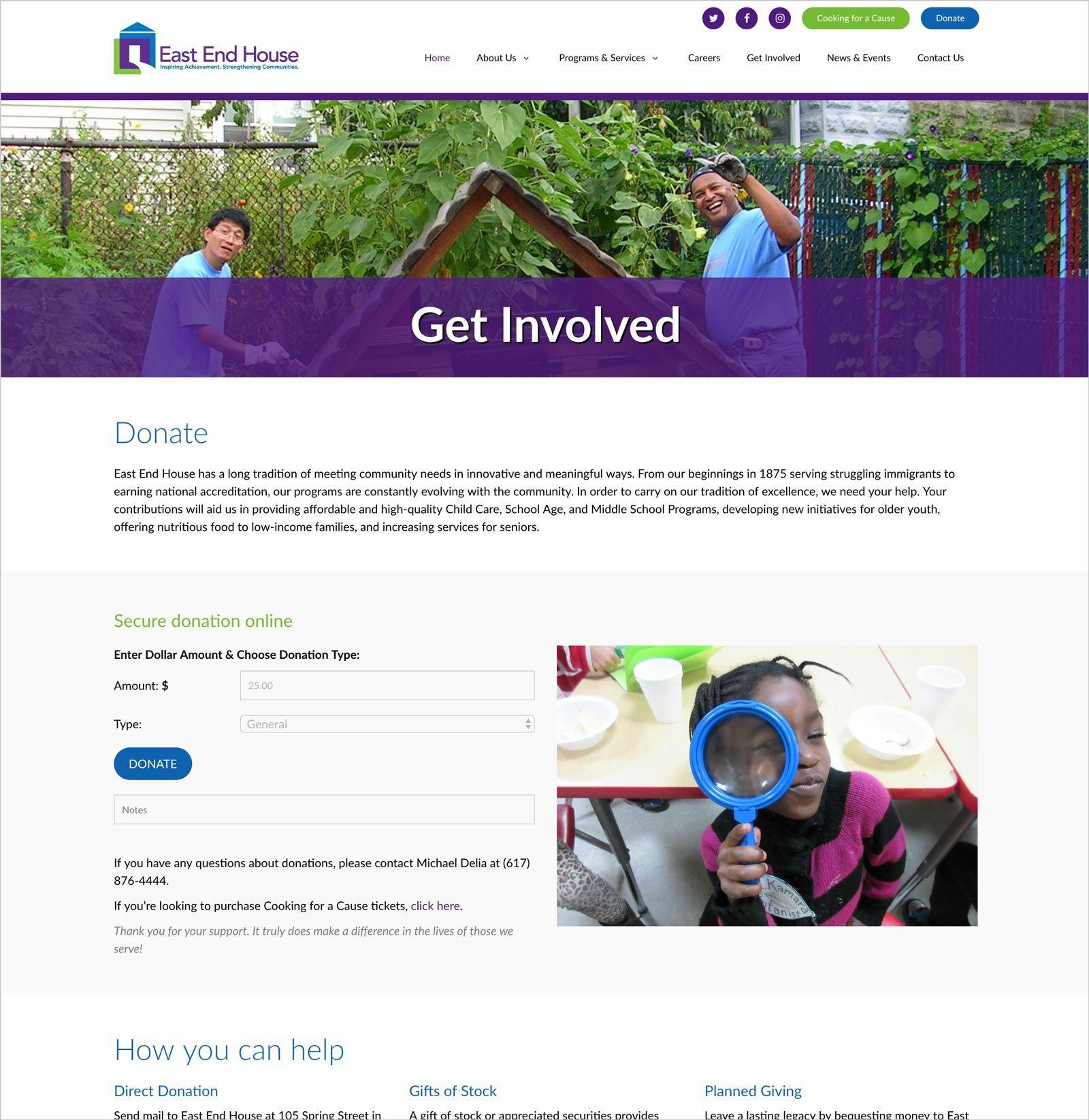 East End House was ready for a fresh look for their website, and with the need to bring it up to speed with today’s best practices in the industry – we developed the site in WordPress. Since WordPress is a very user-friendly platform, this enables EEH to streamline their website updating process and gives them the ability to maintain an active web presence and keep vital information for the community always current.Client