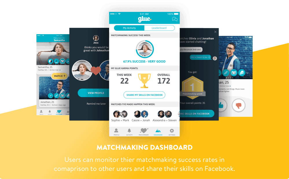 When the team at Glue approached MindSea with the idea for their social dating app, they requested that MindSea create the brand and transfer their rough ideas into a clear and engaging reality. We worked with them to design an innovative dating app experience that allows users to interact with one another as potential matches or play the role of matchmaker.Client