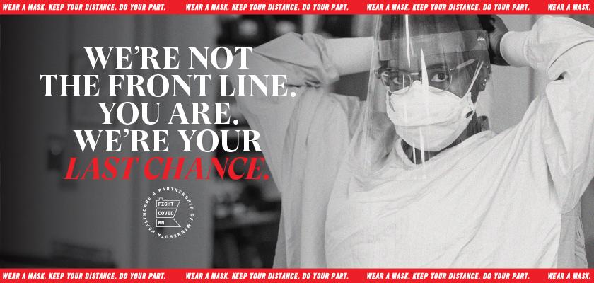 In partnership with over 14 of the Minnesota's largest healthcare organizations, we developed the FightCovidMN campaign to urge Minnesotans to do their part to fight community spread. The campaign includes targeted social, OOH, radio, TV and PR outreach, and launched Thanksgiving week to urge Minnesotans to mask up and avoid gatherings. Client