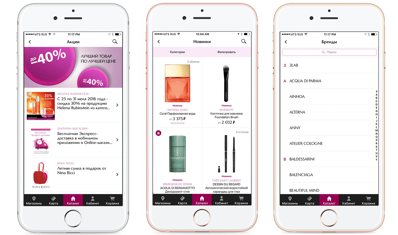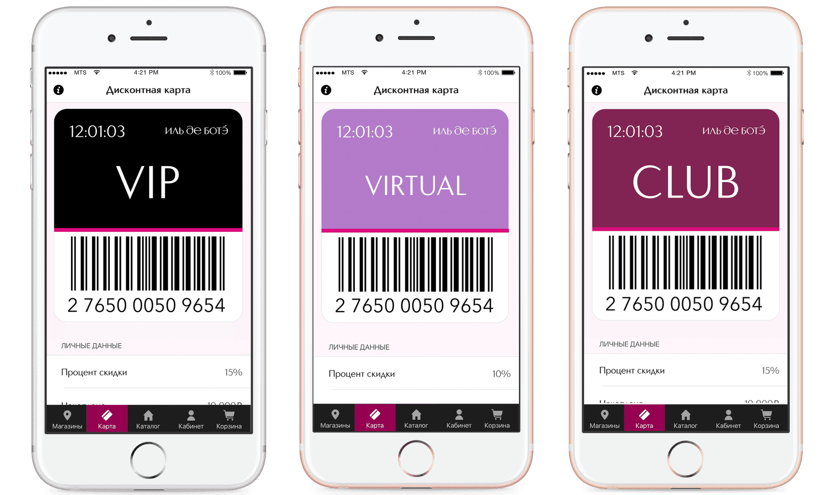 An app for the ILE DE BEAUTE perfume and cosmetics store. Contains a detailed catalogue with more than 120 brand names and assists in finding nearby stores in the city while also functioning as a discount card.Client