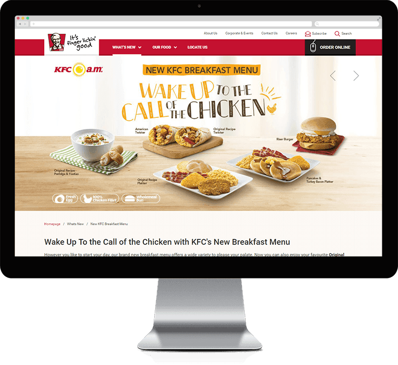 As part of the fast food giant’s re-branding movement, Vintedge initiated the revamp of KFC’s website which features a clean and grid design for easy navigation while also being mobile-responsive. The project’s success has seen the brand achieving a higher user content engagement rate, with average time spent on the site increased by a few folds.Client