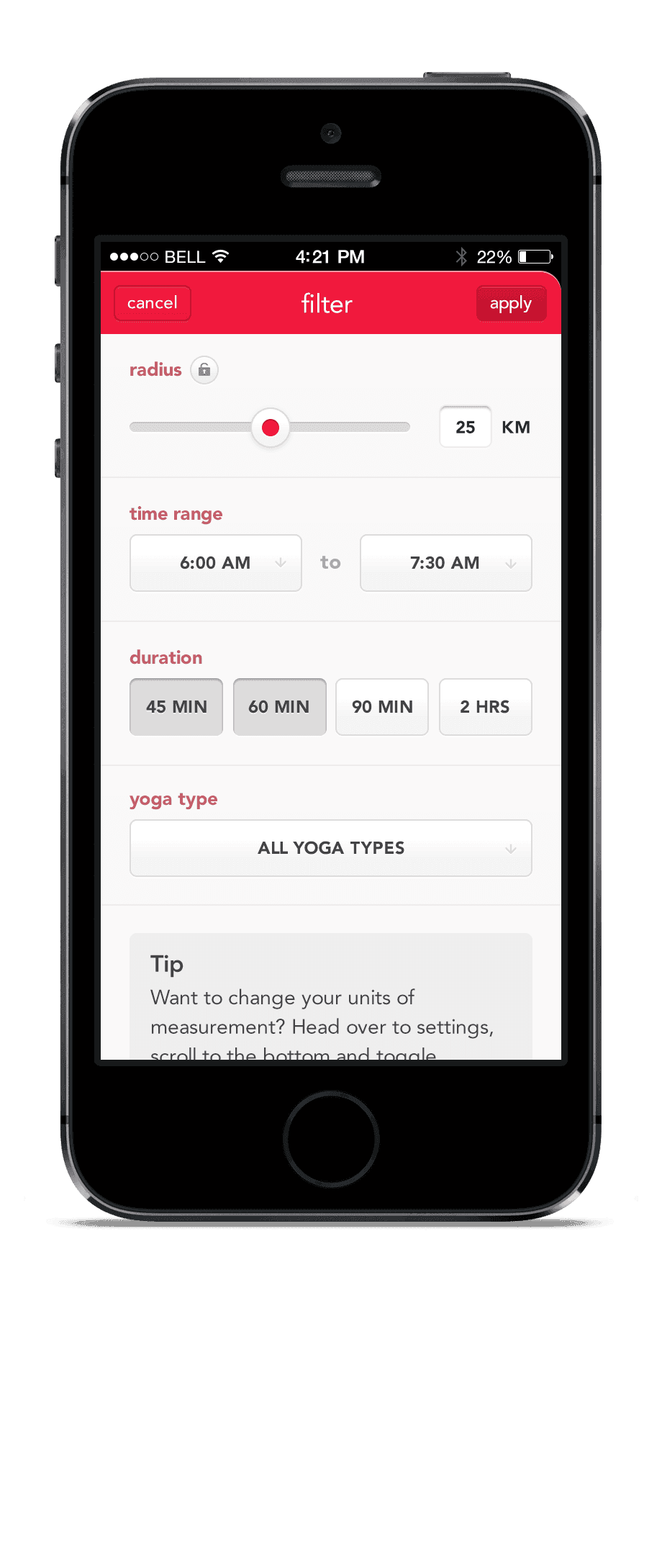 UX and design of Lululemon's first native app - the Om Finder.