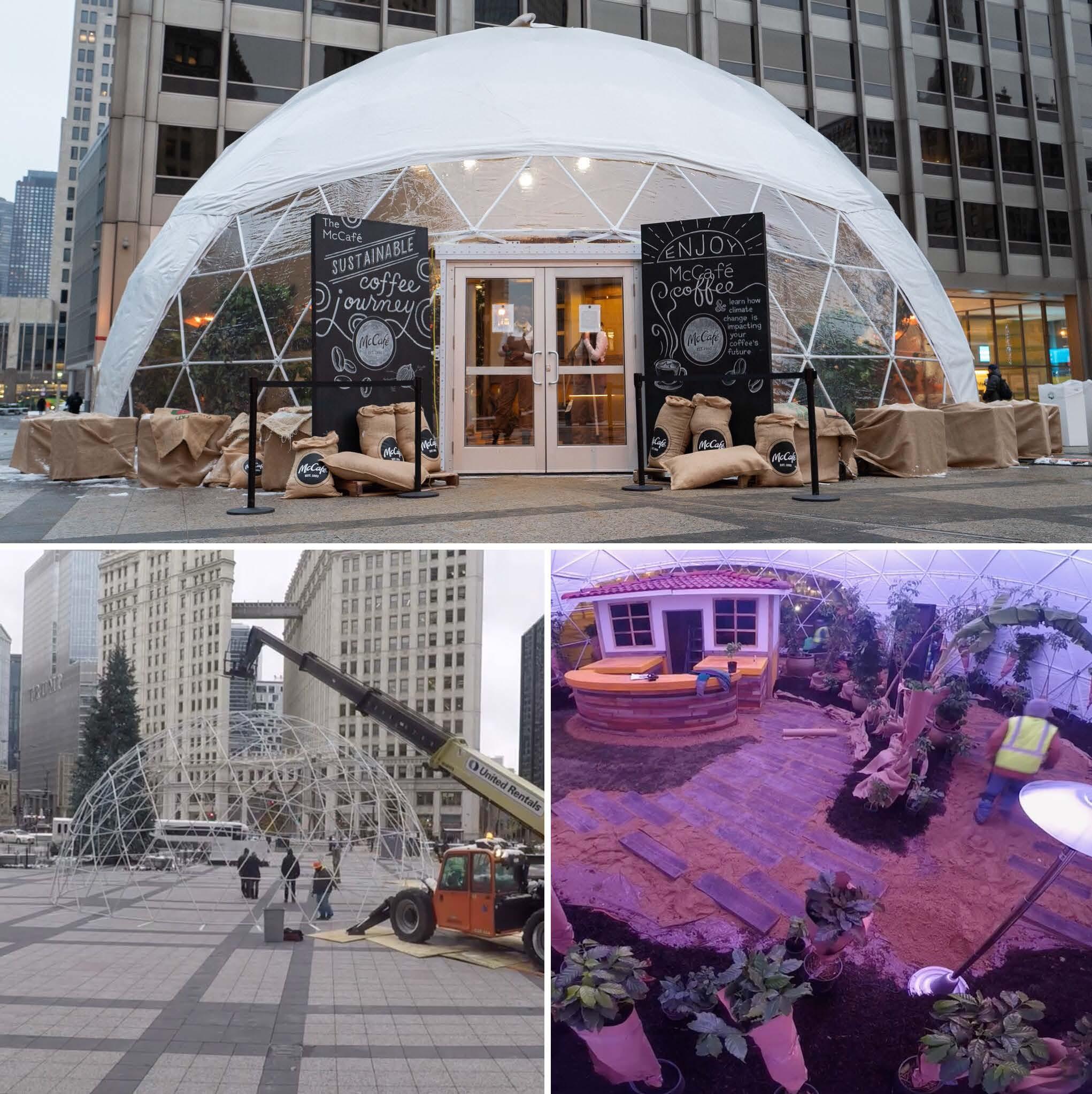 In an effort to illustrate how climate challenges threaten coffee production, McDonald’s created a South American pop-up coffee farm experience in downtown Chicago.