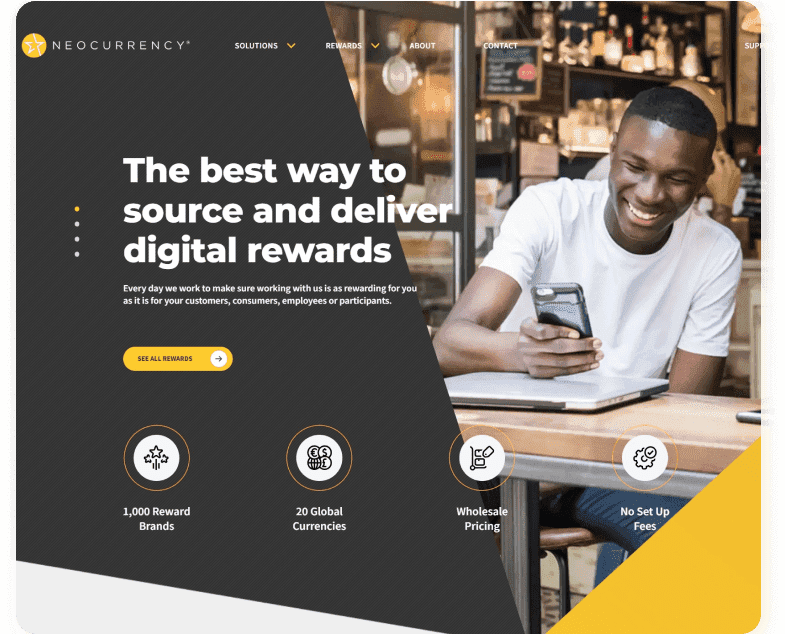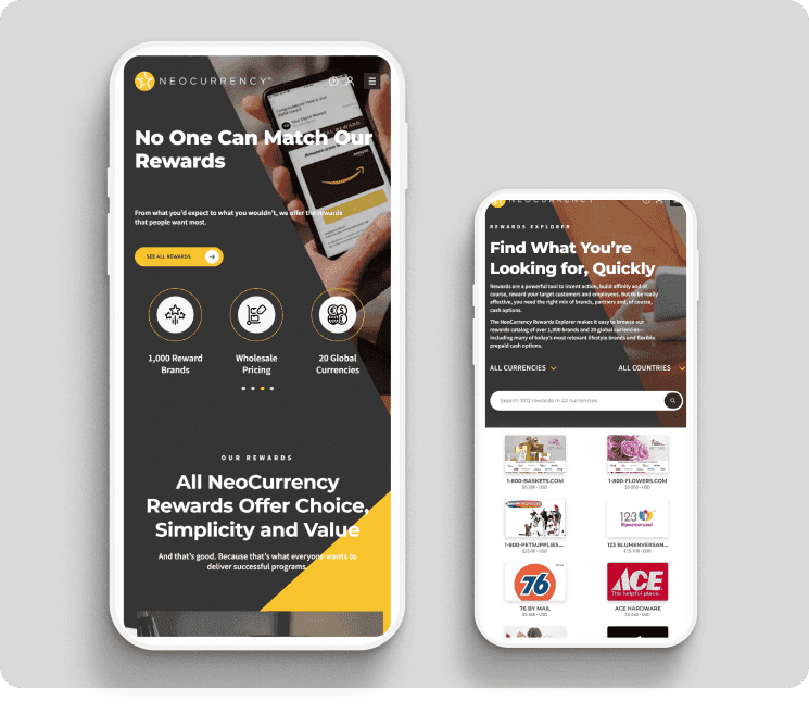 This project was a collaboration between The B Team and Chicago-based React. The challenge was to provide an enticing, public representation of one of the premiere digital rewards platforms. The site connected prospects to the +50K Neocurrency digital rewards catalog to drive interest and outreach.Client