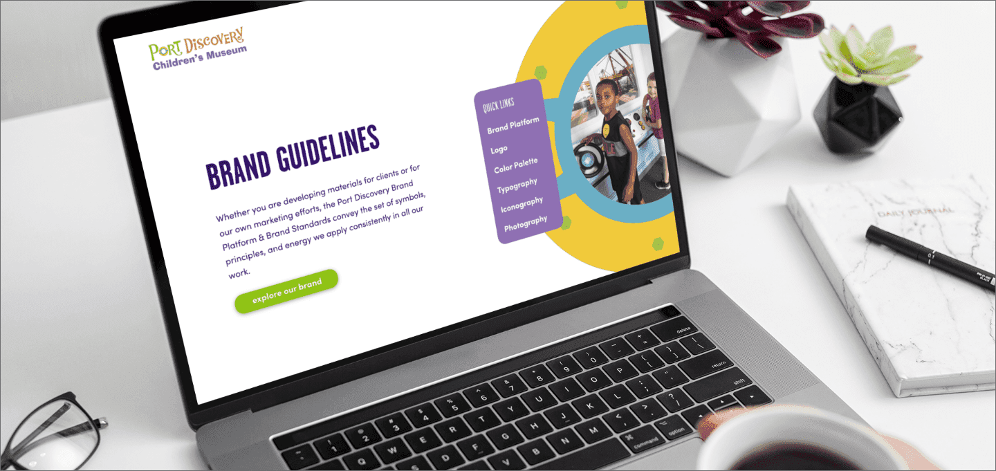 A strategic museum branding strategy, identity refresh, brand guidelines, marketing tools, a new custom website, and digital templates for Baltimore’s premiere children’s museum.Client