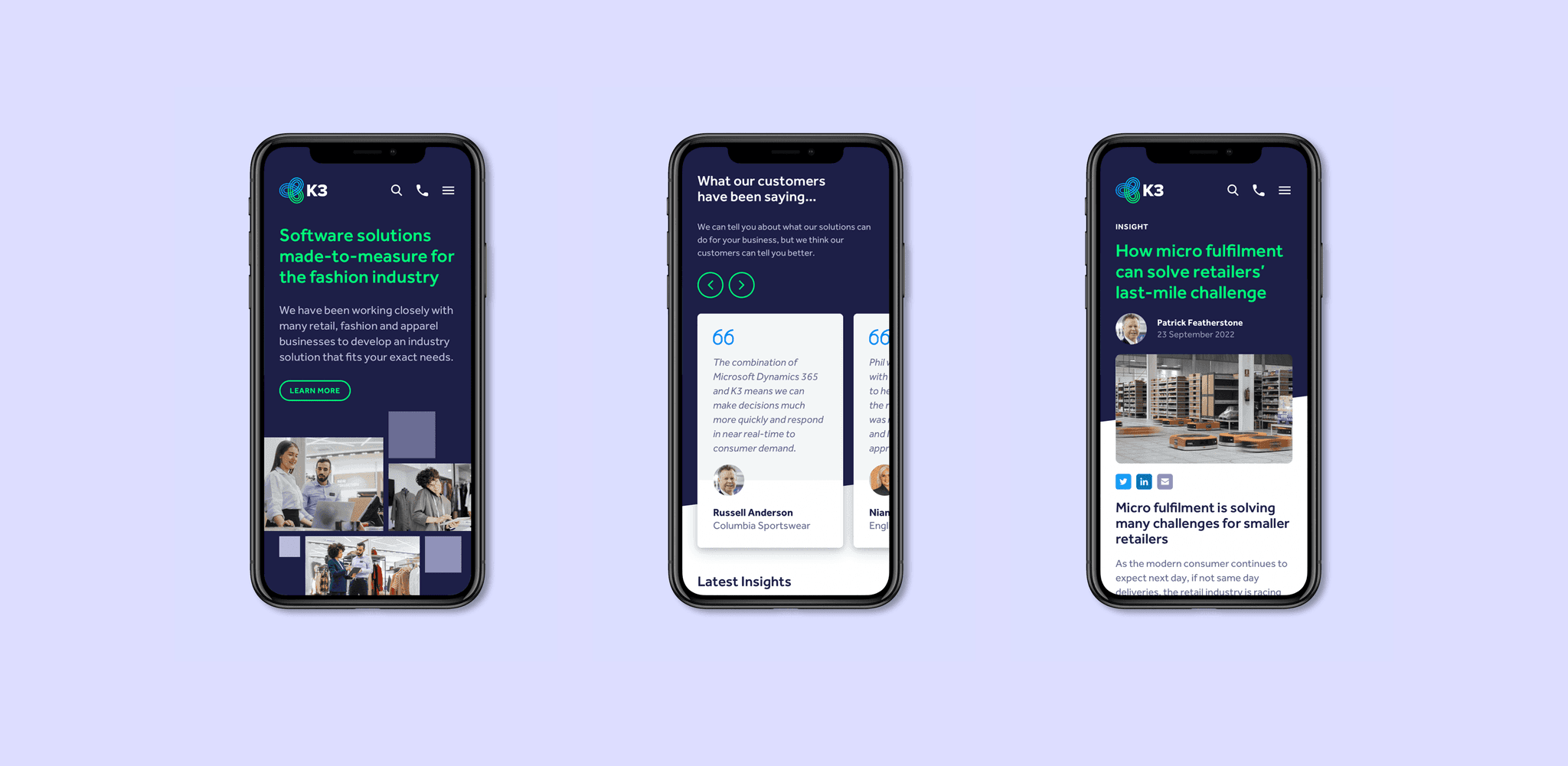 Firebrand worked with K3 to build a brand strategy that informed a new visual style and repositioned them as the go-to sustainable software platform for the fashion industry.