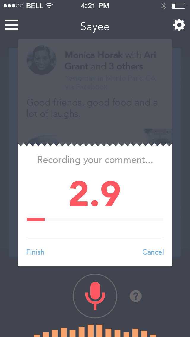 Sayee is a voice controlled platform for interacting with your social media feeds.