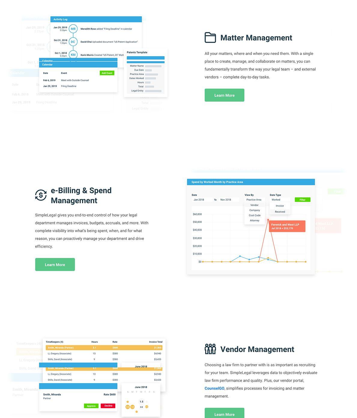 Salespeople have Salesforce. Marketers have Hubspot. Legal teams have SimpleLegal. See how we showcase this complex solution, simply.
