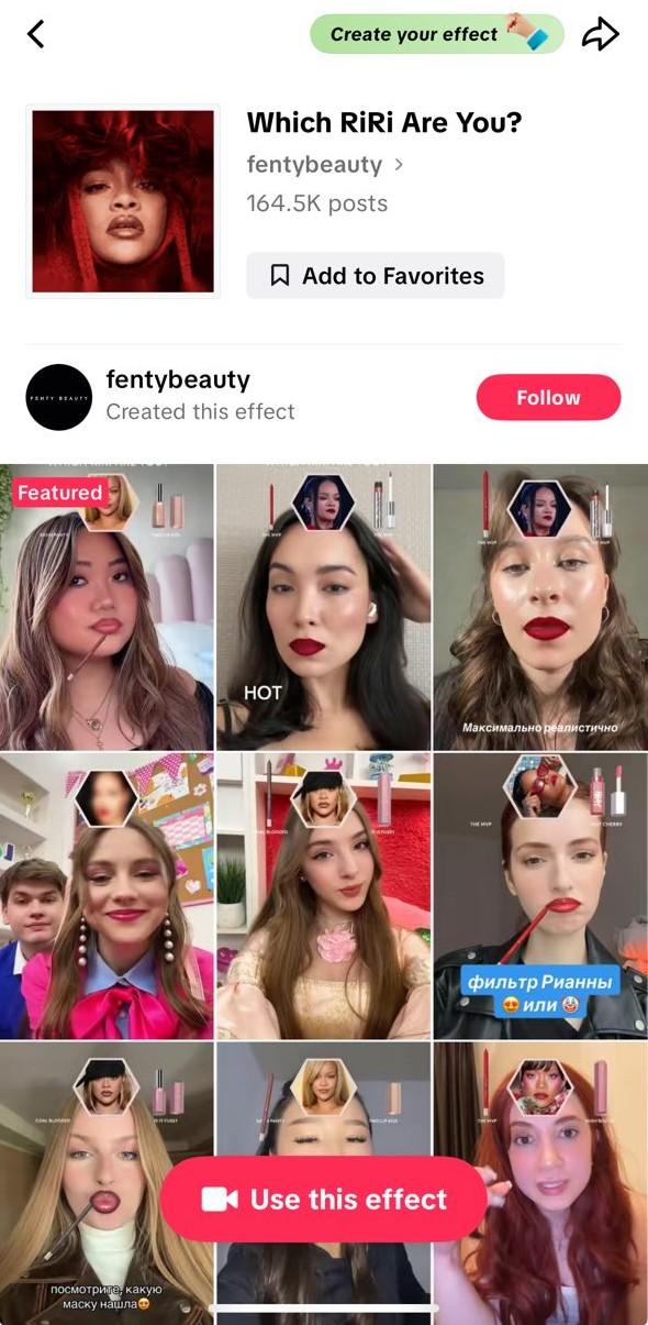 "Which Riri Are You?" AR TikTok Filter for Fenty Beauty
